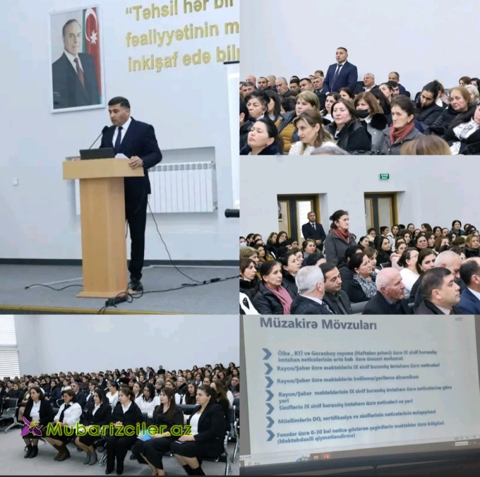 Goranboy-Naftalan rayonları üzrə təhsil sektorunun tabeliyində fəaliyyət göstərən ümumtəhsil məktəblərinin lX sinif üzrə qiymətləndirmə nəticələrinin təhlili mövzusunda görüş keçirilib.