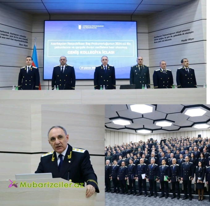 Yanvarın 27-də Azərbaycan Respublikasının Baş Prokurorluğunda Mərkəzi aparatın, Respublika Hərbi, Naxçıvan Muxtar Respublikası və Bakı şəhər prokurorluqlarının rəhbər heyətinin, rayon (şəhər) və ərazi hərbi prokurorlarının iştirakı ilə 2024-cü ildə prokurorluq orqanları tərəfindən cinayətkarlığa qarşı mübarizə, istintaq işi, prokuror nəzarəti sahələrində görülmüş işlərin vəziyyəti və qarşıda duran vəzifələrin müzakirəsinə həsr olunmuş Geniş Kollegiya iclası keçirilib.