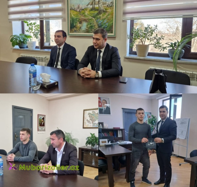 Gəncə-Daşkəsən Regional Təhsil İdarəsinin müdiri Elçin Kərimov sərbəst və yunan-Roma güləşi üzrə U15 ölkə birinciliyində qızıl medala layiq görülən Gəncə idman liseyinin şagirdi Əli Məmmədov və həmin liseyin direktoru Mehman Allahverdiyev ilə görüşüb.