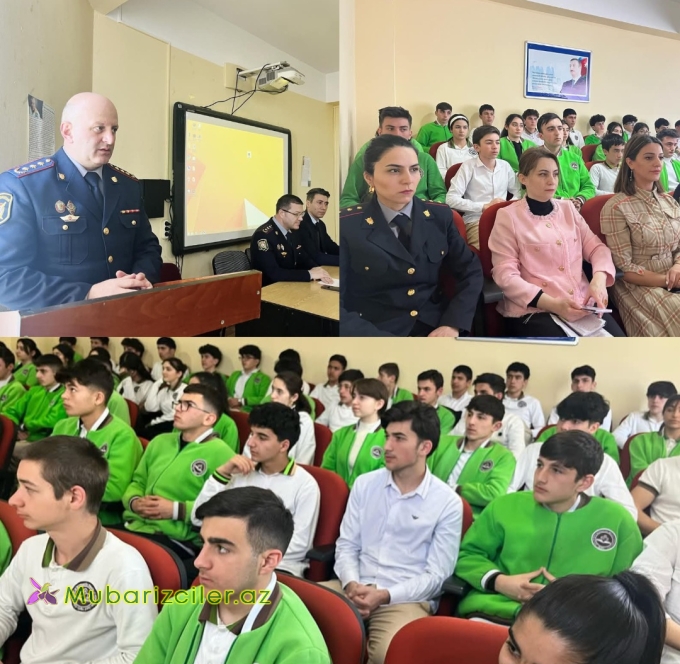 Həmçinin çıxış edən RPŞ-nin rəisinin xidmət üzrə müavini, polis polkovniki Vüsal Rüstəmov Daxili İşlər Nazirliyinin Polis Akademiyası barədə şagirdlərə ətraflı məlumat verərək, təhsil müəssisəsinin yaranma tarixi, inkişafı, ölkəmizdə hüquq elminin inkişafına verdiyi töhfələr, daxili işlər orqanlarının ali təhsilli hüquqşünaslarla təmin olunmasındakı fəaliyyətindən danışıb.