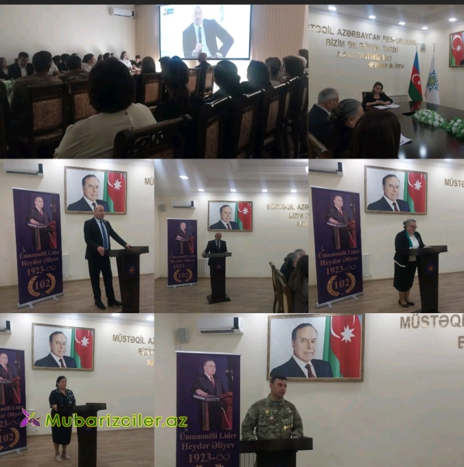 Mubarizciler.az xəbər verir ki, tədbir Ümummilli Lider Heydər Əliyevin və torpaqlarımızın azadlığı uğrunda canından keçən Şəhidlərimizin əziz xatirəsinin bir dəqiqəlik sükutla yad edilməsi ilə başladı.