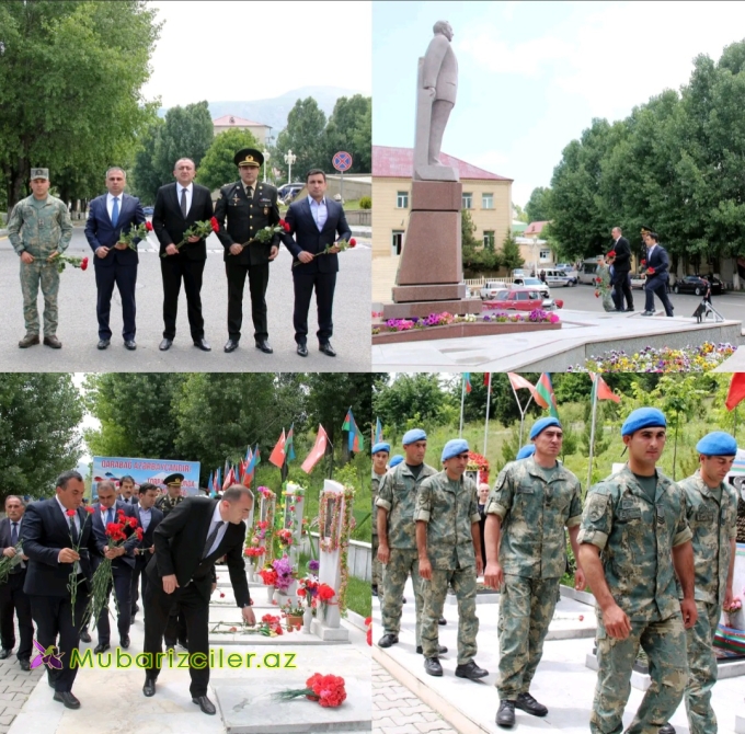 Mubarizciler.az xəbər verir ki, 26 İyun – Azərbaycan Respublikasının Silahlı Qüvvələri Günü münasibətilə Daşkəsən Rayon İcra Hakimiyyətinin başçısı Orxan Abbasov, Daşkəsən rayon prokuroru Şahin İmanov, Daşkəsən Rayon Polis Şöbəsinin rəisi, polkovnik Məhəmməd Əhmədbəyli, SHXÇDX-nin rayon bölməsinin rəisi, polkovnik- leytenant Ramin Məmmədov, N saylı hərbi hissənin komandiri, polkovnik- leytenant Bayram Hüseynov Ulu Öndər Heydər Əliyevin Daşkəsən şəhərinin mərkəzində ucaldılmış abidəsini ziyarət edərək, gül dəstələri düzüblər, Ümummilli Liderin əziz xatirəsi dərin ehtiramla yad ediblər. Sonra hərbçilərin, şəhid ailələri üzvlərinin, müharibə veteranları və qazilərin iştirakı ilə Daşkəsən Şəhidlər Xiyabanı ziyarət olunub, şəhid məzarlarına gül dəstələri düzülüb, dualar oxunub. Eyni zamanda, Daşkəsən Rayon İcra Hakimiyyətinin başçısı Orxan Abbasov Şəhidlər Xiyabanında ucaldılmış "Əbədi məşəl" abidəsinin önünə gül dəstəsi qoyub. Daşkəsən Rayon İcra Hakimiyyətinin başçısı Orxan Abbasov 26 İyun – Azərbaycan Respublikasının Silahlı Qüvvələri Günü münasibətilə başda möhtərəm Prezident, Müzəffər Ali Baş Komandan cənab İlham Əliyev olmaqla, respublikadakı ordu, birləşmə və hissələrin şəxsi heyətlərini, hərbçi ailələrini, müharibə veteranlarını və şəhid ailələrini təbrik edib, ərazi bütövlüyümüz və suverenliyimiz uğrunda canlarını qurban vermiş qəhrəman şəhidlərimizin əziz xatirəsinin qəlbimizdə əbədi yaşayacağını bildirib. Orxan Abbasov həmçinin 44 günlük Vətən müharibəsində qazanılmış şanlı Zəfərdən, Azərbaycan Ordusunun gücündən və peşəkarlığından söz açıb. 2023-cü ilin sentyabrında həyata keçirilən lokal xarakterli antiterror tədbirləri nəticəsində ölkəmizin suverenliyinin tam bərpa olunduğunu vurğulayıb. Qeyd edib ki, Prezident, Müzəffər Ali Baş Komandan cənab İlham Əliyevin rəhbərliyi ilə Azərbaycan Ordusu regionda sülhün və sabitliyin təminatçısına çevrilib.