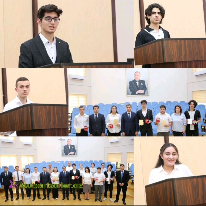 Gəncədə qızıl və gümüş nişana layiq görülən məzunlarla görüş keçirilib Fotolar