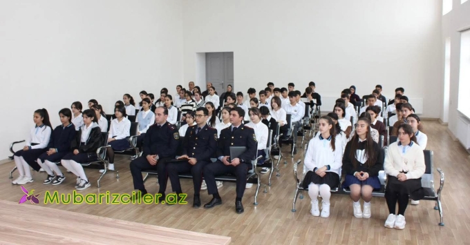 Mubarizciler.az xəbər verir ki, RPŞ-nin rəisi polis polkovniki Müqalib Abdıyev narkotik vasitələrin törətdiyi real faciələrdən danışıb, sağlam həyat tərzinin vacibliyini vurğulayıb. Həmçinin şagirdlərə internetdə şəxsi məlumatların qorunması, sosial şəbəkələrdəki kibercinayətkarlıq halları və ondan qorunma yolları barədə ətraflı məlumat verilib. Sonda mövzular ətrafında məktəblilərin sualları cavablandırılıb.
