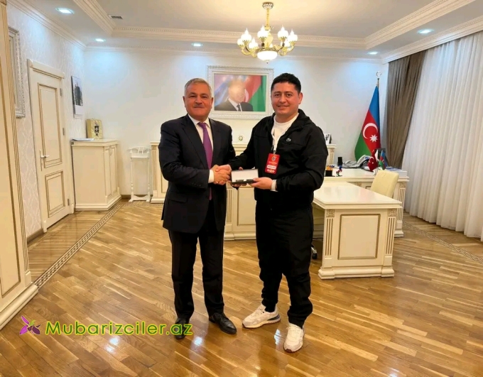 Müstəqim Məmmədov Dünya və Avropa çempionu, Olimpiya mükafatçısı, "Şöhrət" ordenli Rəsul Çunayevlə görüşüb Fotolar